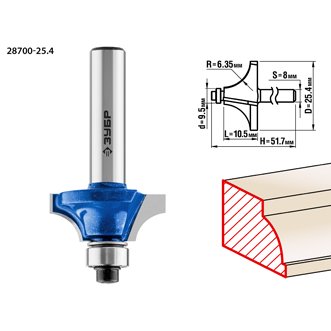 Фреза кромочная калевочная No1, D= 25,4мм, рабочая длина-11мм, радиус-6,3мм,хв.-8мм, d-12,7мм, ЗУБР Артикул: 28701-25.4