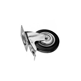 Колесо с опорой; колесо - резина. д. 100мм/ш. 26мм, подшип., аппарат. 80кг; Опора - площад. 75х75, поворот.,тормоз; общ. высота 134мм. Артикул: SCgb 42
